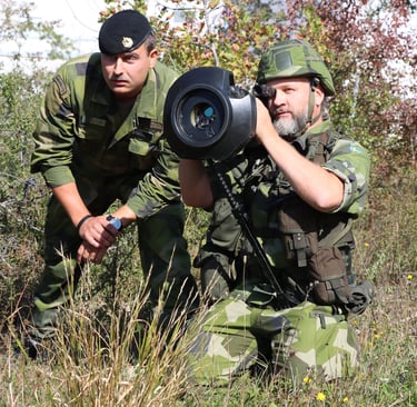 Dag Svensson kniet in voller Kampfmontur auf dem Erdboden, auf seiner Schulter eine 12 Kilo schwere Panzerabwehrlenkwaffe, auch NLAW genannt, im Anschlag. Unter dem strengen Blick seines hünenhaften Kapitäns nimmt er das Ziel ins Visier – ein roter Laserpunkt im Zielfernrohr zeigt es ihm an – löst mit den Fingern der rechten Hand die Sicherung und drückt den Zündknopf.